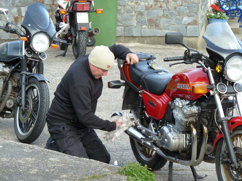 Prima di partire oltre ad ammirare il panorama piccolo controllo e sistemazione delle moto dopo i primi 2300 km.