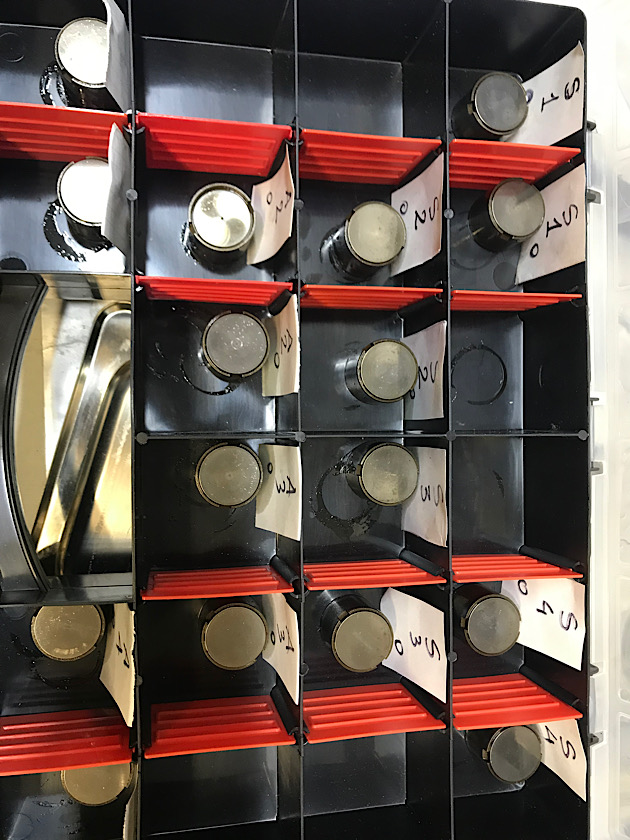 Segue la scatola con i bicchierini nell'ordine di smontaggio/montaggio. i più attenti noteranno che manca un piattello. Dov'è finito?
