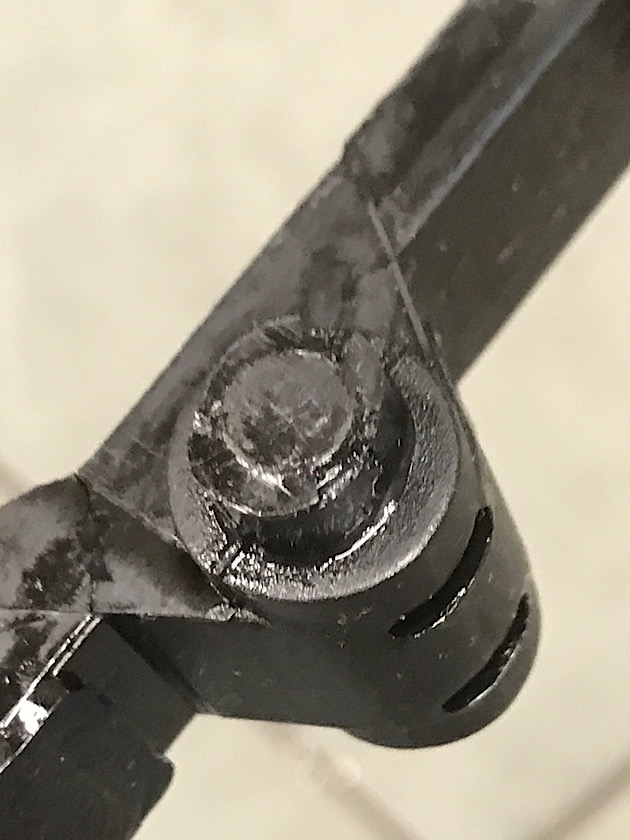 3)Il perno per la regolazione del tiro: è mangiato in testa. L'ho rovinato io quando ho dovuto rifilettare la sede della vite di bloccaggio che si era spezzata. Ho rifatto il foro e ho messo un inserto ensat. Purtroppo era tutto grippato e ho mangiato anche il perno.
