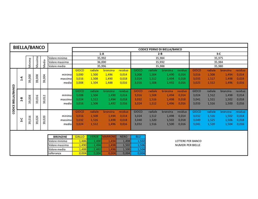 Da qualche parte ho letto che c'é chi, nel caso che le sedi dell'albero siano nel range indicato da manuale, monta tutte bronzine di banco gialle a prescindere, ma io ho seguito e seguirò i consigli del manuale (tab allegata)