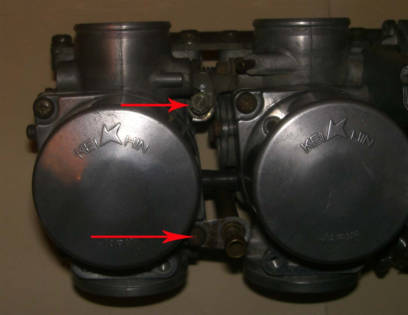 Foto 3: allentare il dado e avvitare la vite di sincronizzazione dei carburatori (prendere nota del numero di giri per ripristinare la regolazione in modo approssimativo dopo il montaggio).