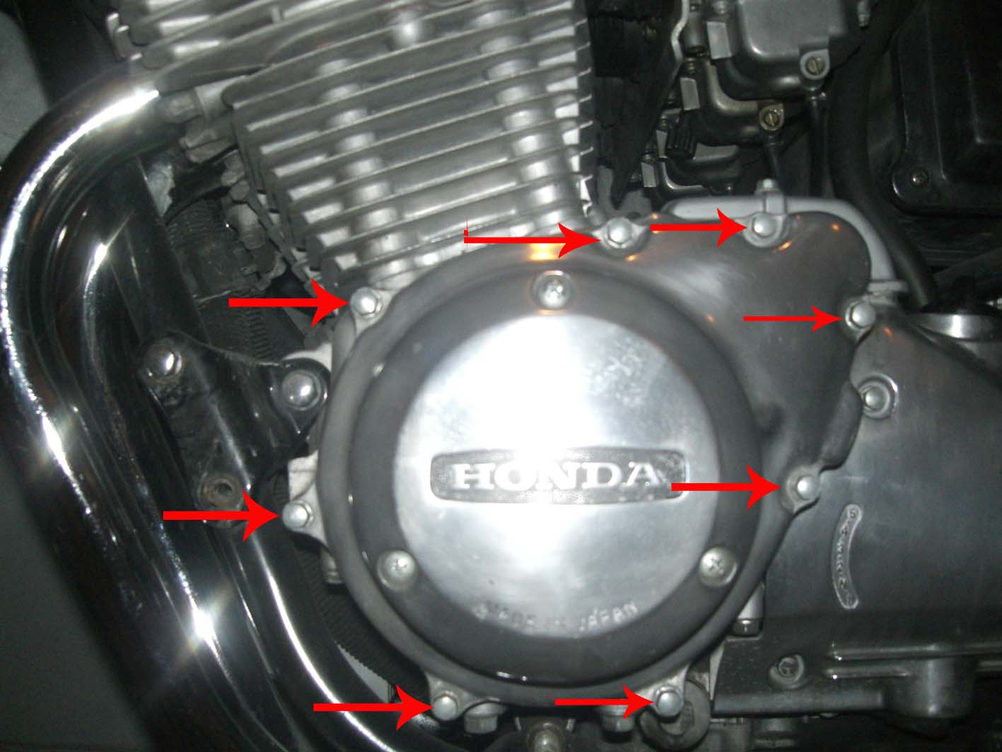 Foto 1. Con una chiave poligonale da 8 svitare le viti che fissano il carter e toglierlo, è normale che esca un pochino di olio. Fare attenzione al cavo del pick e a non rovinare la guarnizione.
