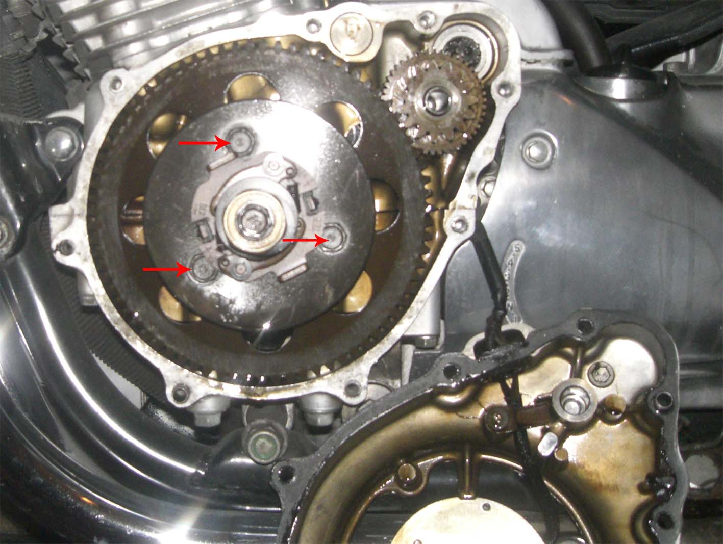 Molto spesso rumori anomali al momento dell’accensione e “ciotolii” a bassi giri sono dovuti ad un semplice allentamento dei tre bulloni che fissano le varie componenti.
