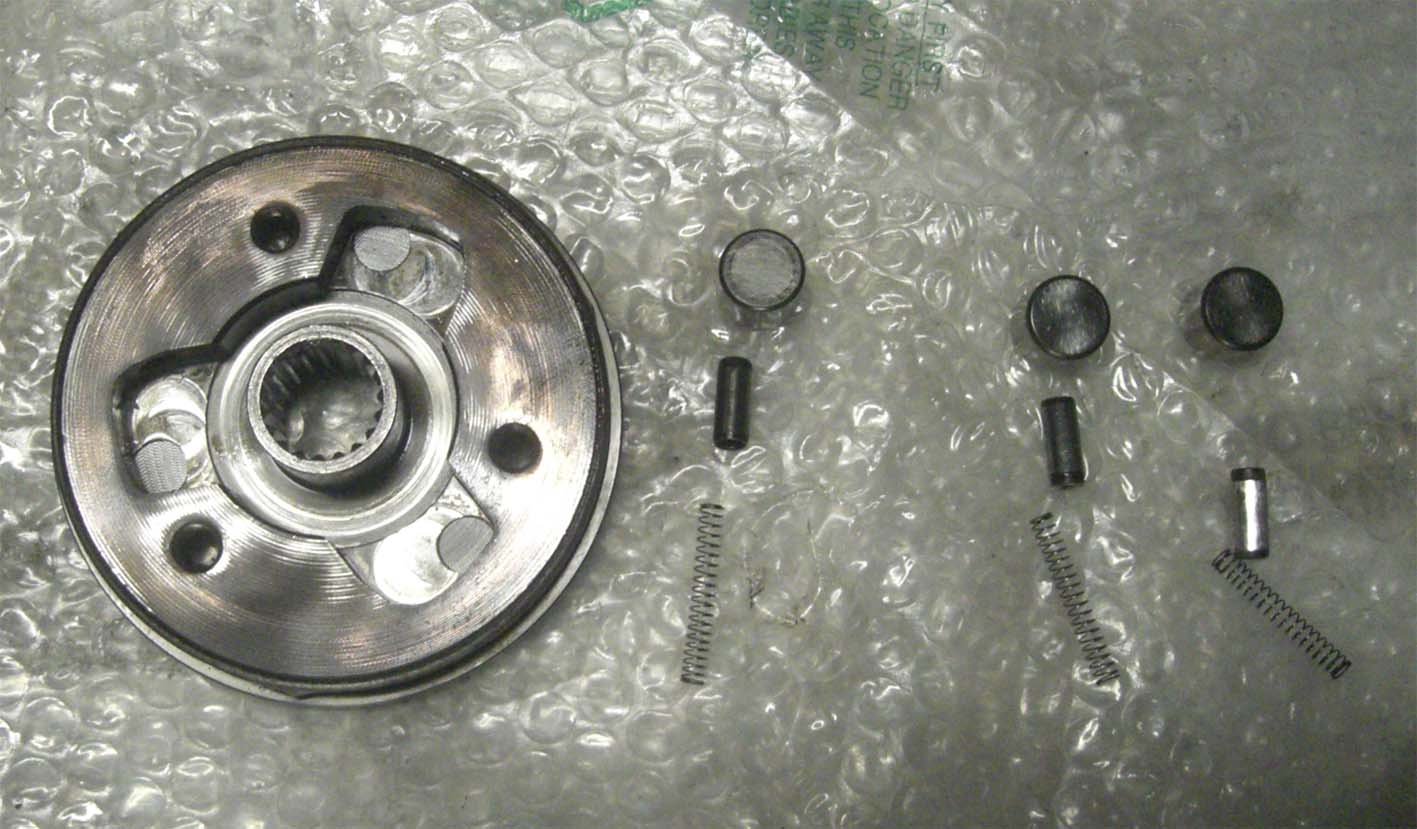 Foto 6. Dopo aver pulito i componenti controllare la superficie dei cilindretti. Può essere conveniente cambiare le molle (circa 2 € l'una) o almeno tirarle leggermente.