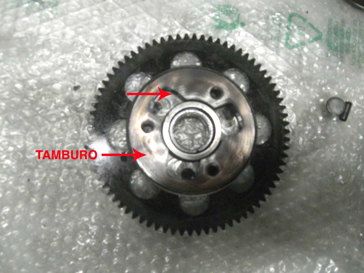 La ruota libera, detta anche frizione del motorino di avviamento, si trova sotto il carter sinistro assieme al pick-up e all’anticipo dell’accensione.