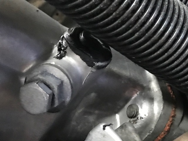 qui si vede la pasta nera e il bullone ancora in posizione prima del mio maldestro tentativo....