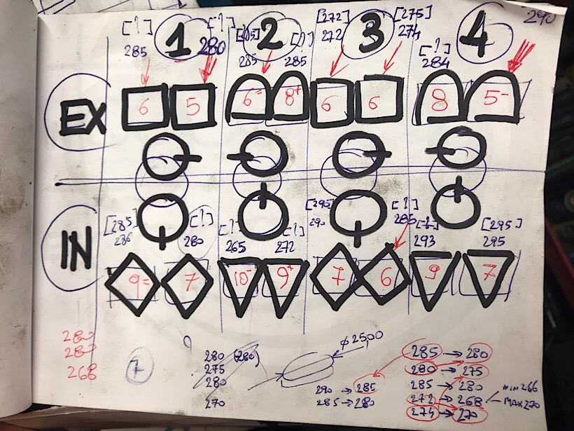 Lo spessore lapidellato è proprio quello dellunica valvola di aspirazione con gioco 0,06. Da 2,85 l’ho portato a 2,81 (2,815) così il gioco sale a 0,1 (0,095).