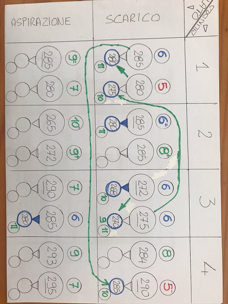 Direi che l'aspirazione, tranne forse una, è a posto. Secondo me il gioco delle valvole di scarico va aumentato.