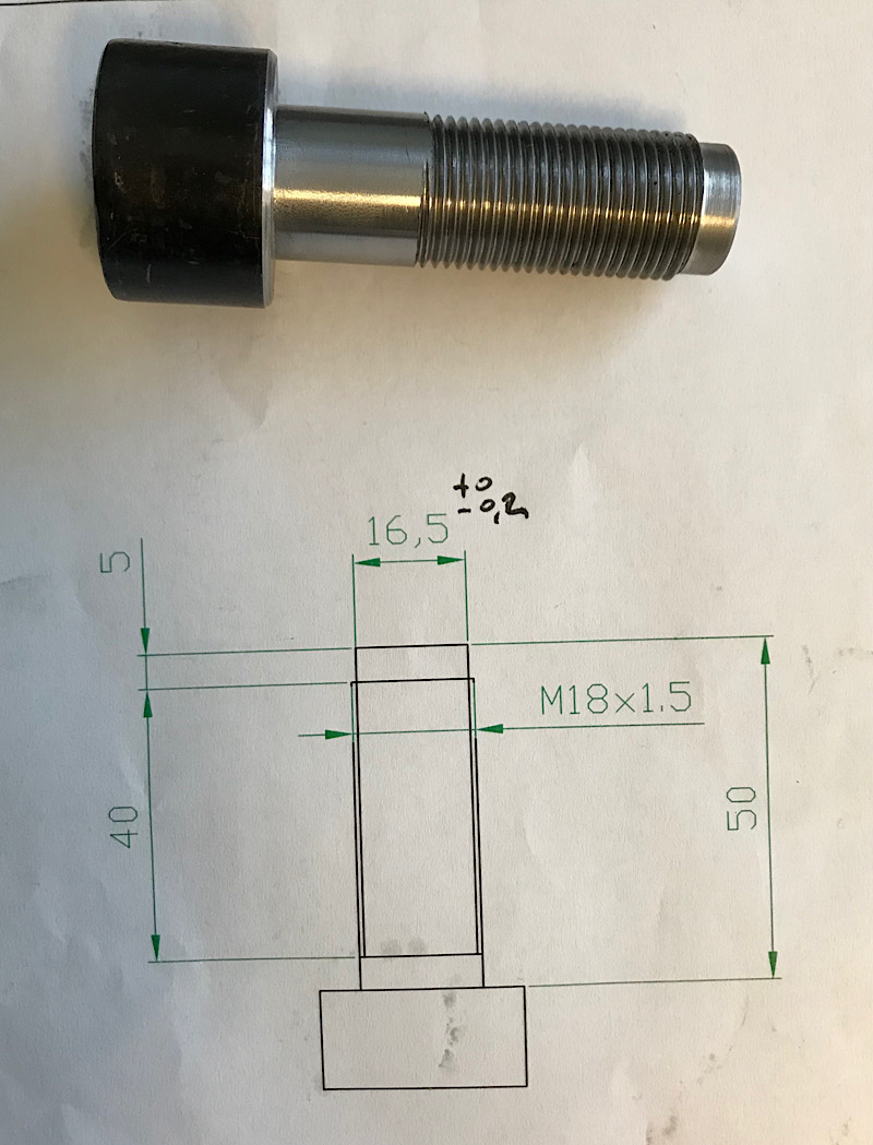 Se te lo vuoi costruire, per la forma della "punta" prendi spunto dall'asse della ruota posteriore, ti sarà sufficiente togliere il dado e non sfilare l'intera asse. Quello di cmnsl mi sembra abbia troppo corpo davanti alla filettatura e quindi spreca drasticamente il numero di filetti utili per lavorare al max dell'efficienza.