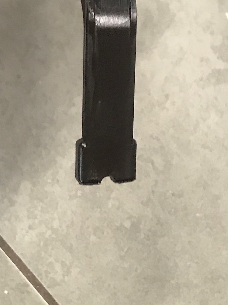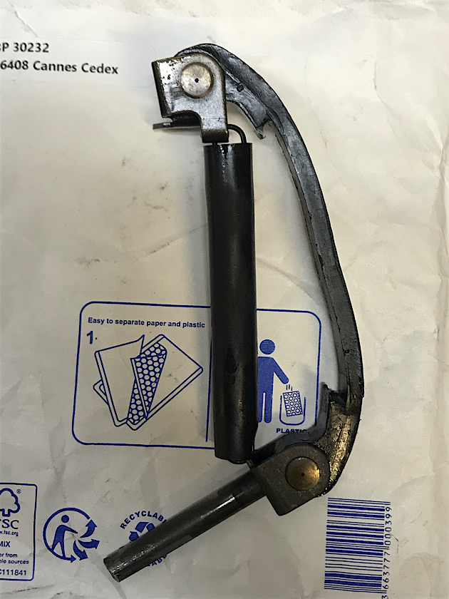 Non sembra molto consumata ma uno dei due perni dì appoggio è rovinato. Sembra essere un pezzo costano sto: plastica iniettata su un’anima Metallica. Forse un termoindurente.