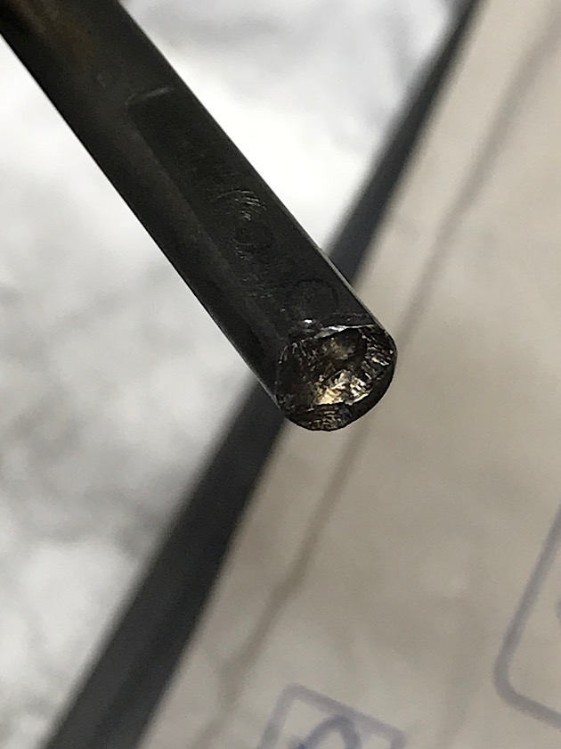 3)Il perno per la regolazione del tiro: è mangiato in testa. L'ho rovinato io quando ho dovuto rifilettare la sede della vite di bloccaggio che si era spezzata. Ho rifatto il foro e ho messo un inserto ensat. Purtroppo era tutto grippato e ho mangiato anche il perno.