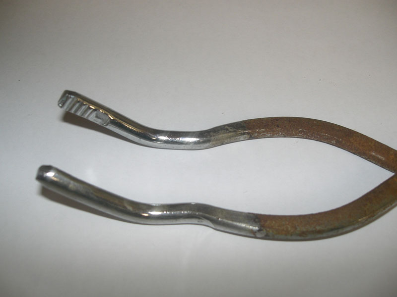 Una pinza cromata. La parte lucida è rimasta immersa un giorno e una notte nella soluzione