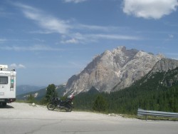 Il mio Transalp in assetto da viaggio. Sullo sfondo casa mia e il monte Antelao