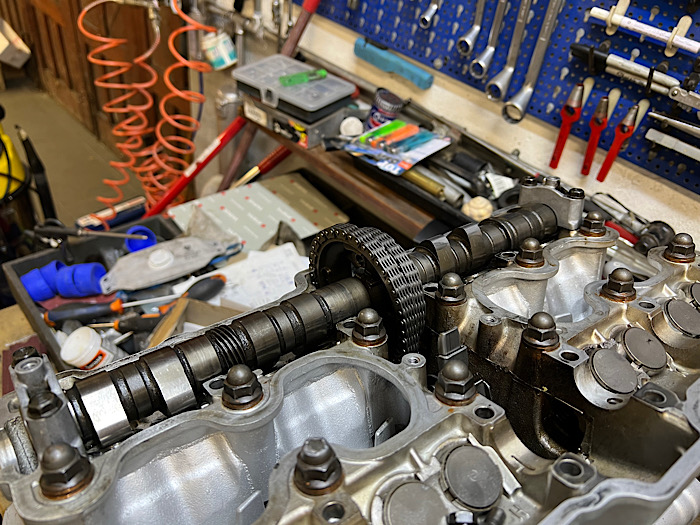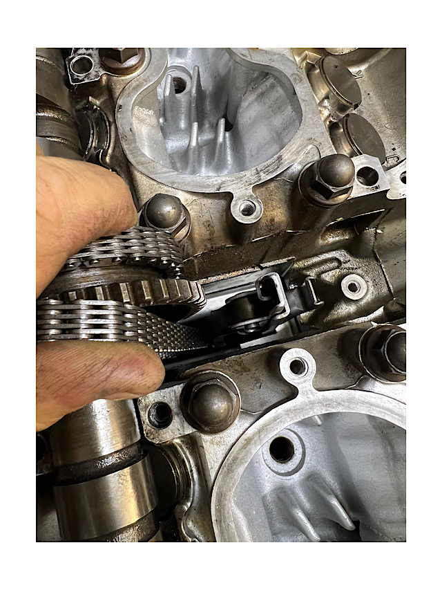 Altra cosa. Mi sono accorto di non avere messo il tendicatena della catena piccola. Forse ho letto male i manuali ma non ho letto di doverla montare prima di chiudere la testa. Adesso è un casinò e sono stato costretto a smontare anche l’asse a camme di scarico. Avevo fatto unabfaticaccia!!!!