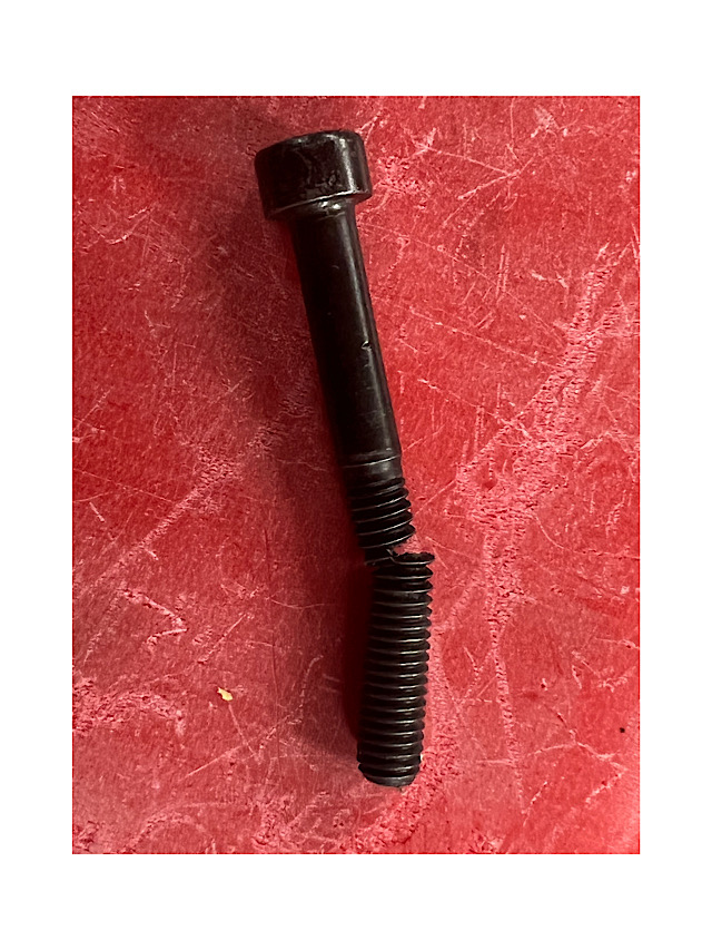 Come avevo scritto (almeno mi sembra) il filetto del cappelletto dove si è rotta la vite non mi convinceva. Dopo avere rotto la vite e averla sostituita con una 8.8 avevo tirato ma mi sembrava sforzasse poco. Le altre viti avevano avuto un indurimento progressivo questa dopo un po’ sembrava resistere poco. Per cui ho deciso di non stringere a 16 ma fermarmi i. Attesa di fare dei controlli. Oggi ho fatto i controlli. Ho provato a stringere a 12 e scattava. Sono passato a 14 poi a 16. Tutto ok ma continuava a sembrarmi troppo morbida. Lo so: se lo dice la dinamo metrica, fidati invece di andare a occhio. Lo scopo era accertarmi che la madrevite fosse ok. Nel dubbio posso sempre mettere un helicoil. Comunque ho messo a 18 e stack. Vite spezzata. Non del tutto. L’ho estratta intera ma in due monconi attaccati per pochissima carne.