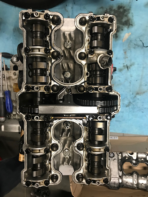 Non ho ancora smontato nulla se non il coprivalvole, devo prima osservare bene e fotografare tutto. Marcare tutto in posizione (direi col 1° pistone al pms) e fare un po' di misure del gioco degli alberi a camme sui supporti col plastigage.
