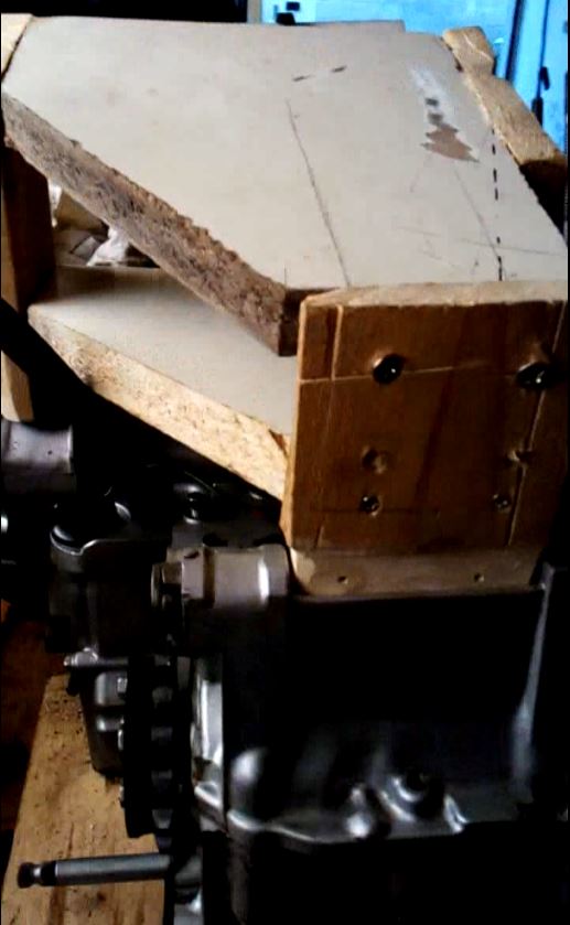 Ho visto che comunque, in 2, lo si potrebbe sollevare per metterlo su un banco da lavoro. Purtroppo è piuttosto instabile, volevo fare una culla per lavorarci a banco ma rischierebbe di cadere comunque a meno di costruire un monumento. Ho deciso di smontare testa e cilindri lasciandolo appoggiato a terra con un minimo telaio di legno sotto. Se anche cade non fa danno.