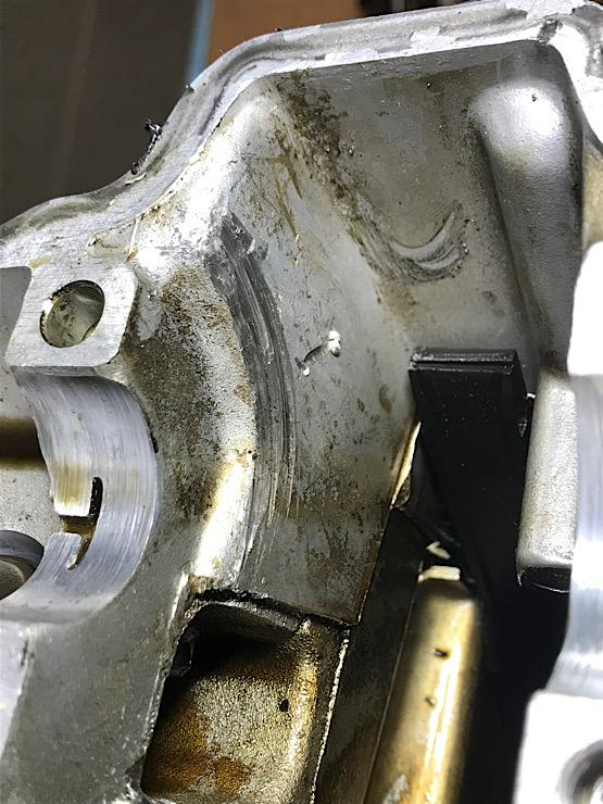 Foto del perno rovinato e del segno lasciato dalla catena sul corpo cilindri.