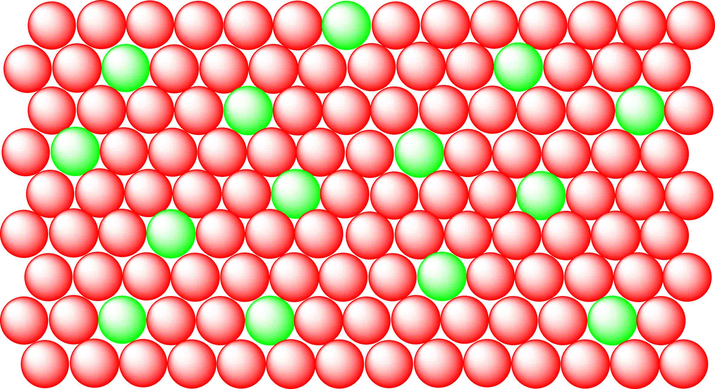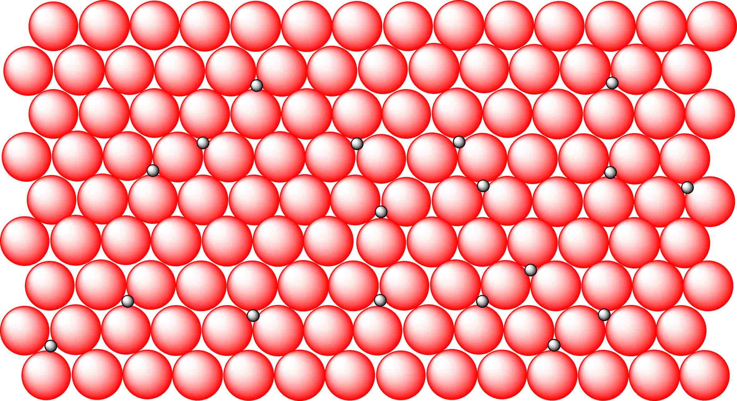 Vediamo prima le leghe interstiziali, nella struttura in fig.1 si può notare che nei punti di contatto tra tre sfere rimane una piccola cavità (o interstizio) che può essere riempita da sfere (atomi) più piccole come in fig.2