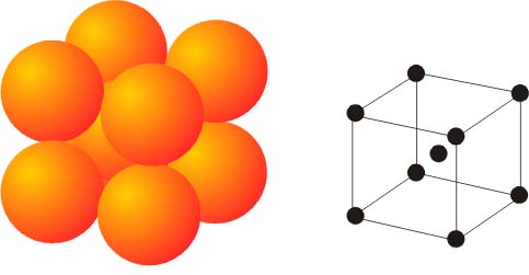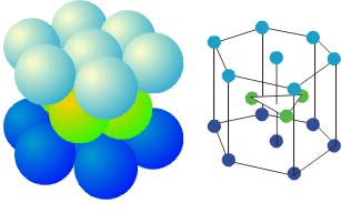 Nel primo caso (fig. 5) avremo una struttura che è detta esagonale impaccata nel secondo caso (fig. 6) la struttura è detta cubica impaccata. Una terza struttura che è rappresentata in fig. 7 è detta cubica a corpo centrato.