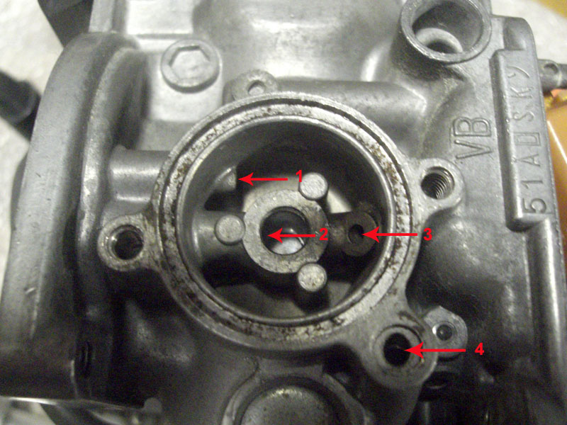 Per essere sicuri della pulizia bisogna accertarsi che il canale che va dal getto alla pilot (3) sia libero altrimenti a bassi giri si possono avere problemi.