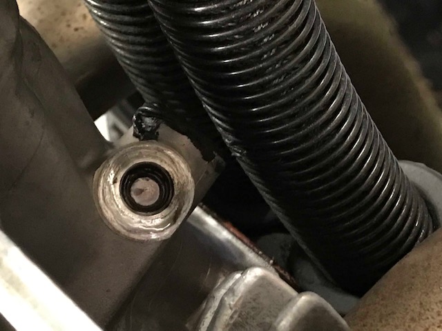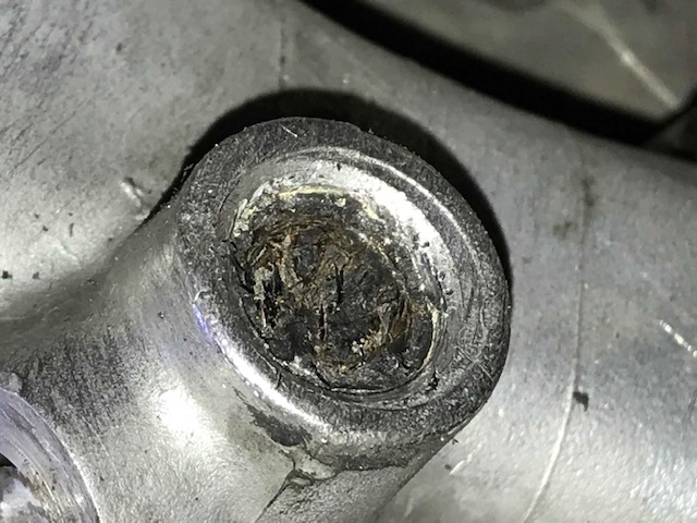 qui si vede la pasta nera e il bullone ancora in posizione prima del mio maldestro tentativo....
