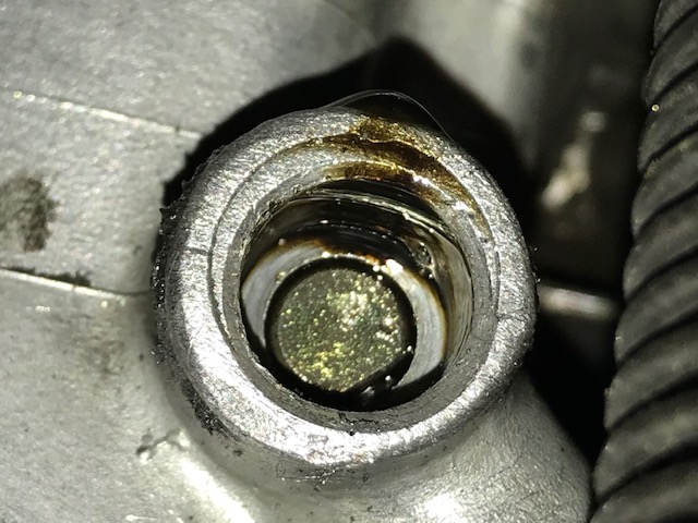 Quello che si vedeva anteriormente, annegato nella pasta nera, era effettivamente il tappo. Era bloccato. L’ho forato ed estratto. Lo sostituirò.