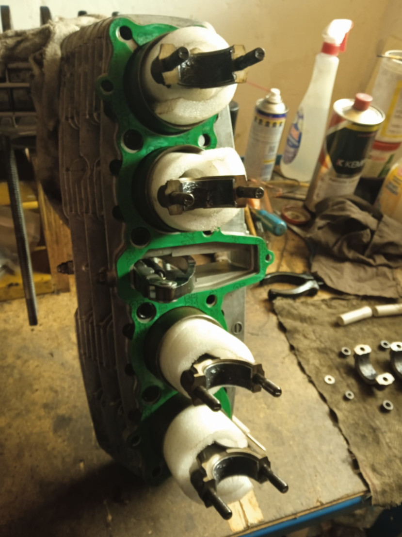 dopo il cambio di tutte le guarnizioni e un paio di bronzine, nuovo controllo plastigauge e montaggio cilindri
