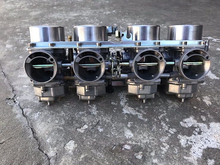 La batteria di carburatori pronta per tornare al suo posto.
