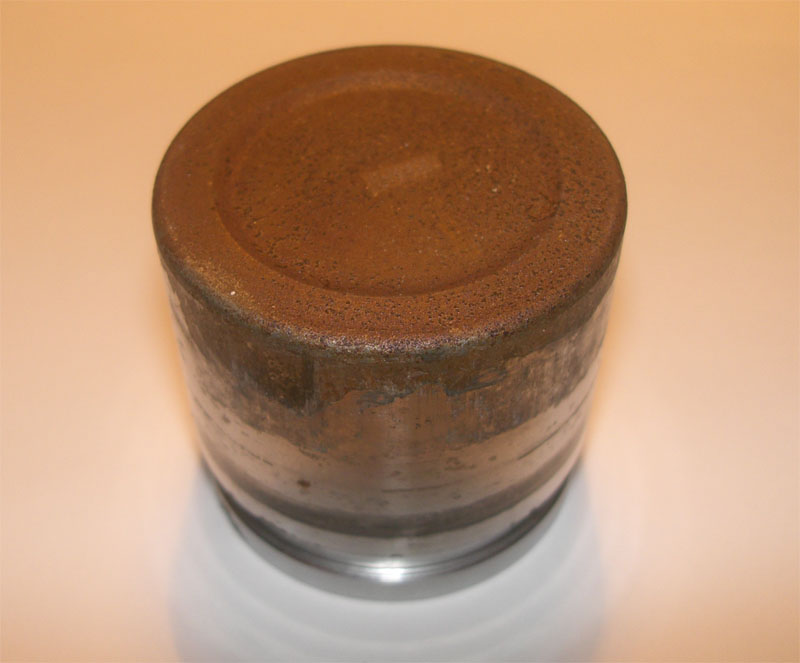 Il pistoncino si presentava in condizioni pietose (foto 1) però dopo 8 ore in quella che Supertitti chiama limonata (foto 2) e una lucidata con pasta abrasiva (foto 3) sono riuscito a riportarlo in buone condizioni.