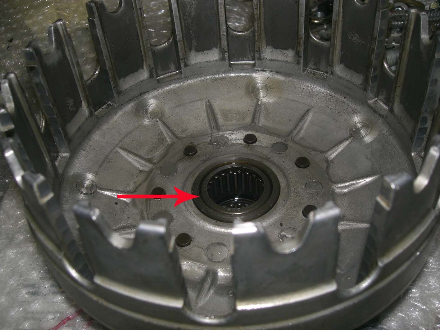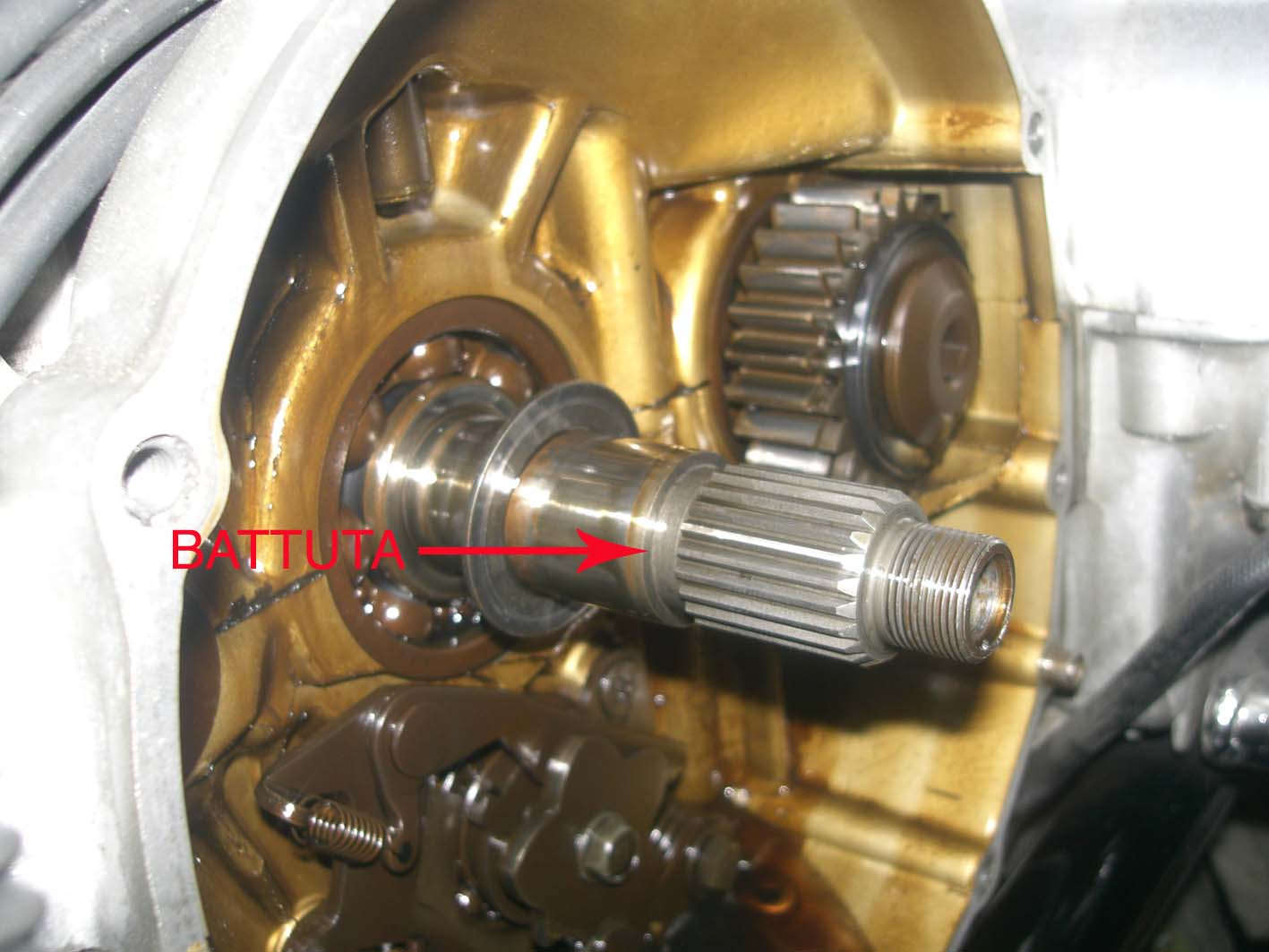 Il gioco longitudinale della campana è garantito dalla rondella millerighe che va in battuta,senza toccare la campana, sullo scalino del primario del cambio indicato dalla freccia nella prima foto. Non deve quindi andare come la rondella nella foto sulla parte liscia dell'albero.