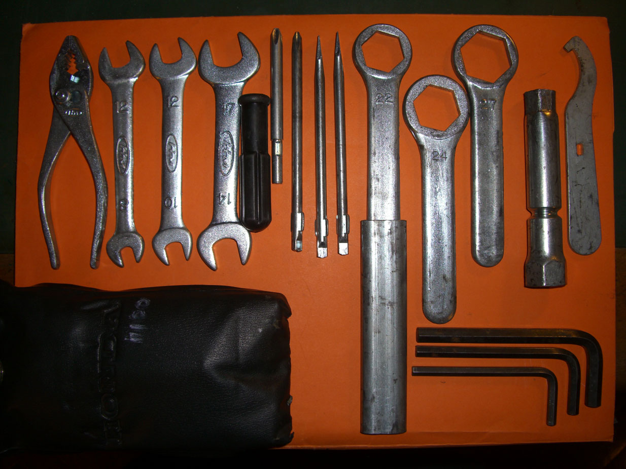 A me mancano le brugole e qualche cacciavite , il resto mi sembra di averlo ma controllerò . Ho anche quella strana chiave con manico lungo , ma l'ho recuperata da un' altra Honda da enduro .