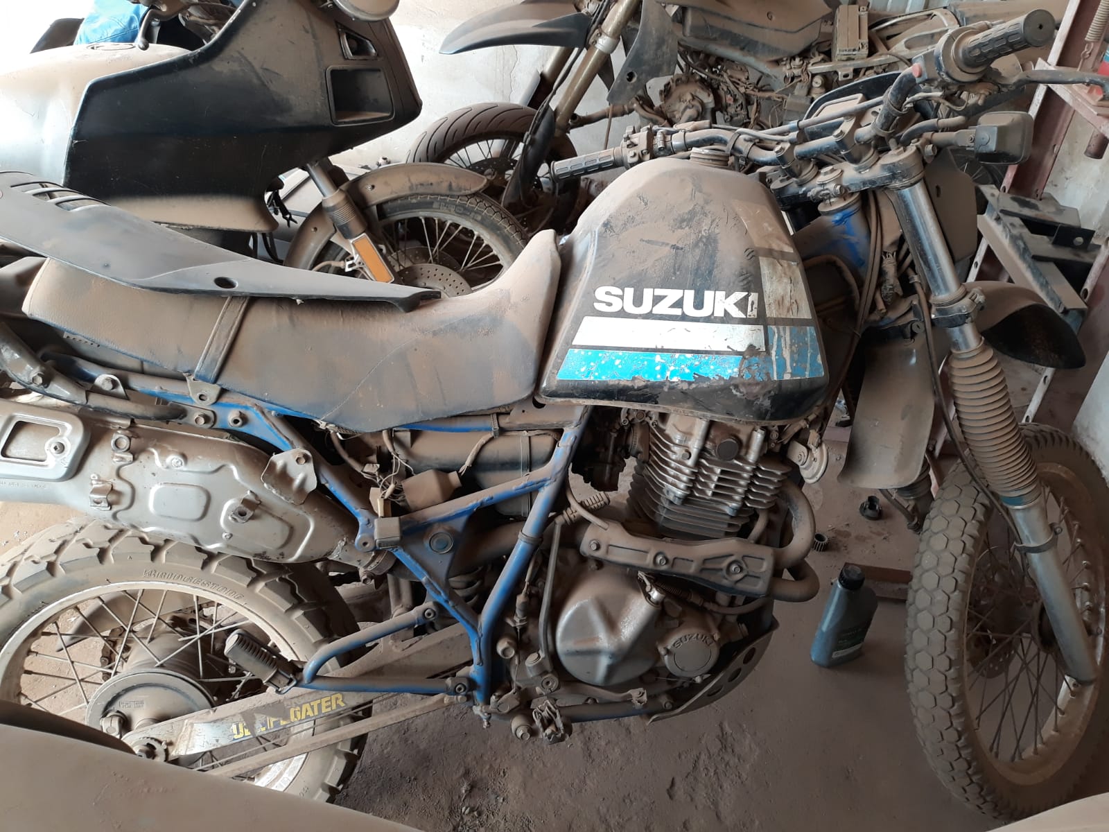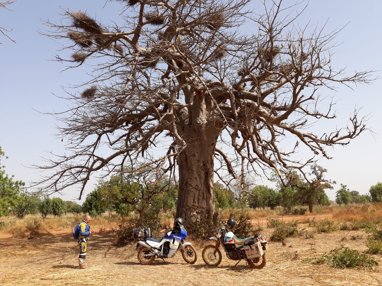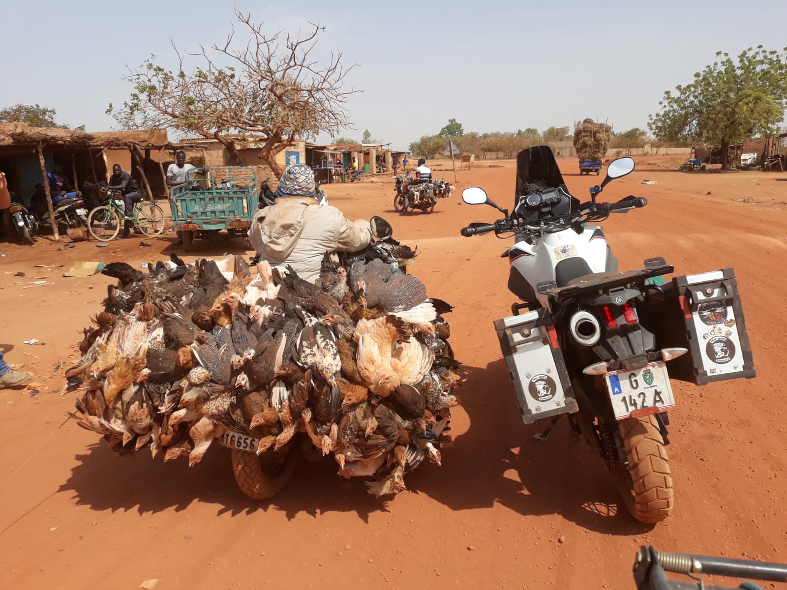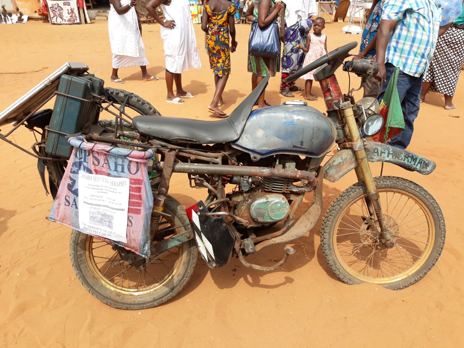 Notare il cimitero moto che non ce l'hanno fatta a tornare da questa dura terra africana .....si nota un Suzuki DR come quello