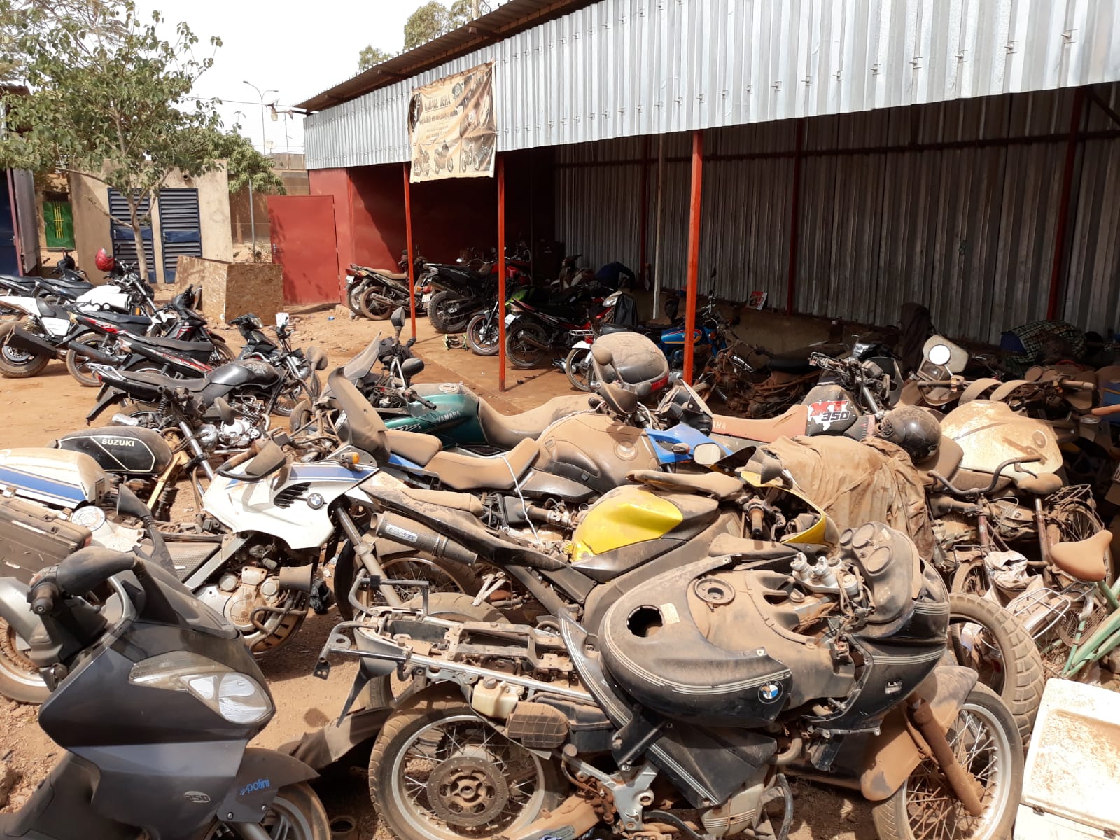 Notare il cimitero moto che non ce l'hanno fatta a tornare da questa dura terra africana .....si nota un Suzuki DR come quello