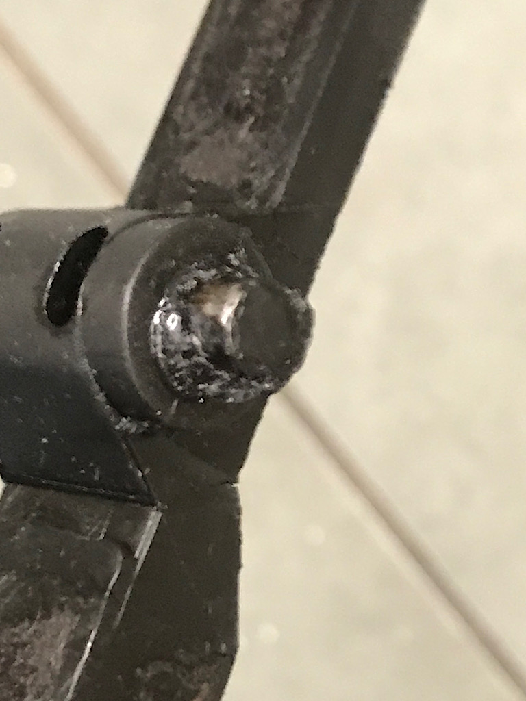 3)Il perno per la regolazione del tiro: è mangiato in testa. L'ho rovinato io quando ho dovuto rifilettare la sede della vite di bloccaggio che si era spezzata. Ho rifatto il foro e ho messo un inserto ensat. Purtroppo era tutto grippato e ho mangiato anche il perno.
