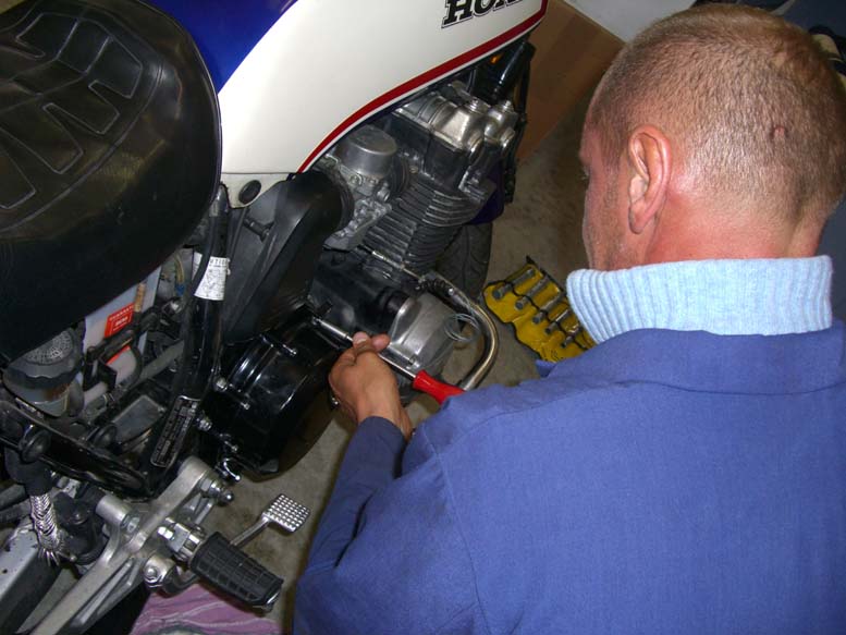 Una Prima cosa da fare è posizionare la Moto col cavalletto laterale in modo tale da non far fuoriuscire troppo olio.